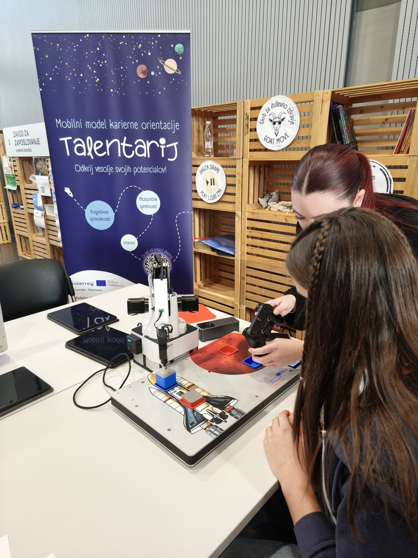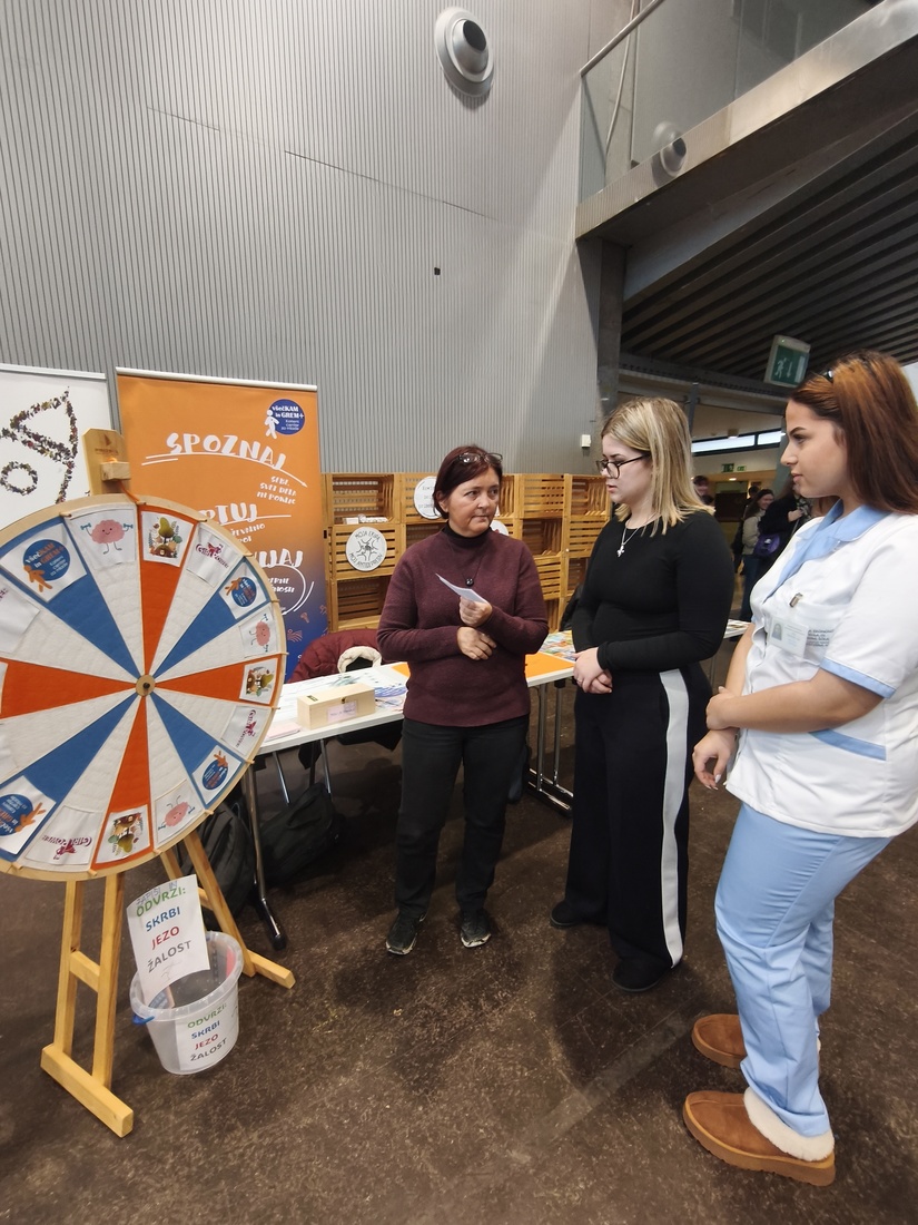 Med razstavljavci smo se predstavili tudi mi v sklopu projekta Karierni center za mlade VšečKAM in Grem+. Naša stojnica je že od jutranjih ur pritegnila številne obiskovalce z interaktivnimi in izkustvenimi aktivnostmi, ki so mlade spodbujale k razmisleku o sebi, svojih interesih in kariernih možnostih.